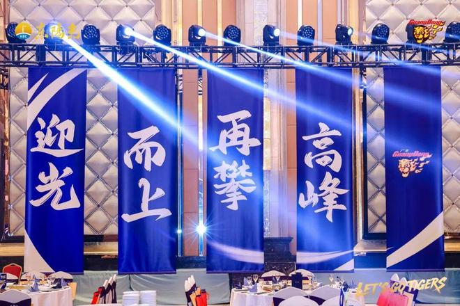 东阳光集团董事、总经理唐新发先生亲手将出征战旗郑重交付广东东阳光队主教练杜锋,寄予球队新赛季再夺佳绩的殷切厚望。随后,杜指导挥舞旗帜,全场高呼“LET'S GO TIGERS”,助力华南虎朝着更高目标迈进。