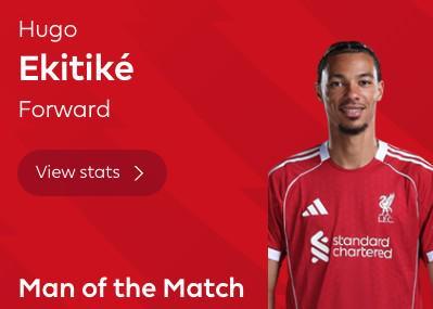 梅开二度,埃基蒂克当选利兹联vs利物浦全场最佳球员