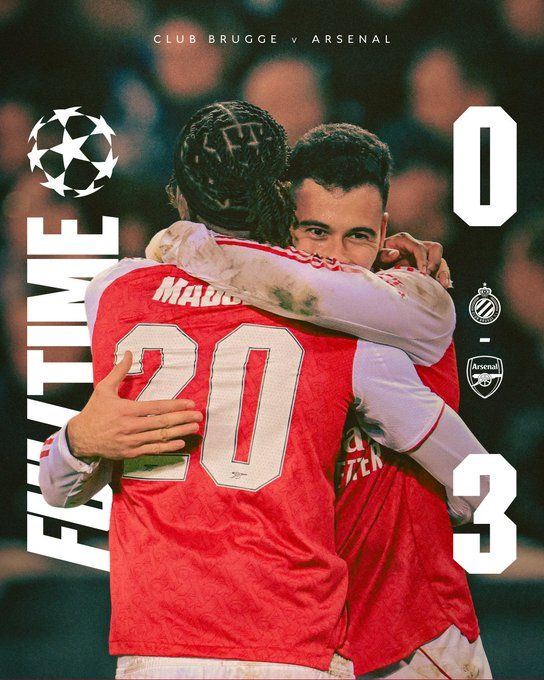 北京时间12月11日04:00,欧冠联赛阶段第6轮,布鲁日坐镇主场迎战阿森纳。上半场,因卡皮耶中柱,马杜埃凯一条龙世界波,拉亚屡献扑救。易边再战,马杜埃凯完成双响,马丁内利世界波,热苏斯复出。最终阿森纳3-0布鲁日。积分榜方面,阿森纳全胜18分领跑,布鲁日4分第30。